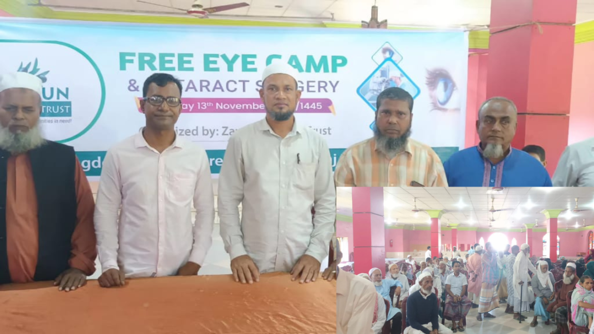 “জীবন যতদিন দৃষ্টি ততদিন” এই স্লোগানকে সামনে রেখে প্রায় ১৫০০ (এক হাজার পাঁচ শত) সুবিধা বঞ্চিত গরীব রোগীদের বিনামূল্যে স্বাস্থ্য পরামর্শ প্রদান, পরীক্ষা-নিরীক্ষা ও ঔষধ, চশমা সরবরাহ করেছে স্বেচ্ছাসেবী সেবা প্রদানকারী সংস্থা জয়তুন ওয়েলফেয়ার ট্রাস্টের ‘‘ফ্রি চক্ষু ক্যাম্প ও ছানি অপারেশন’’ এর আয়োজন করা হয়।