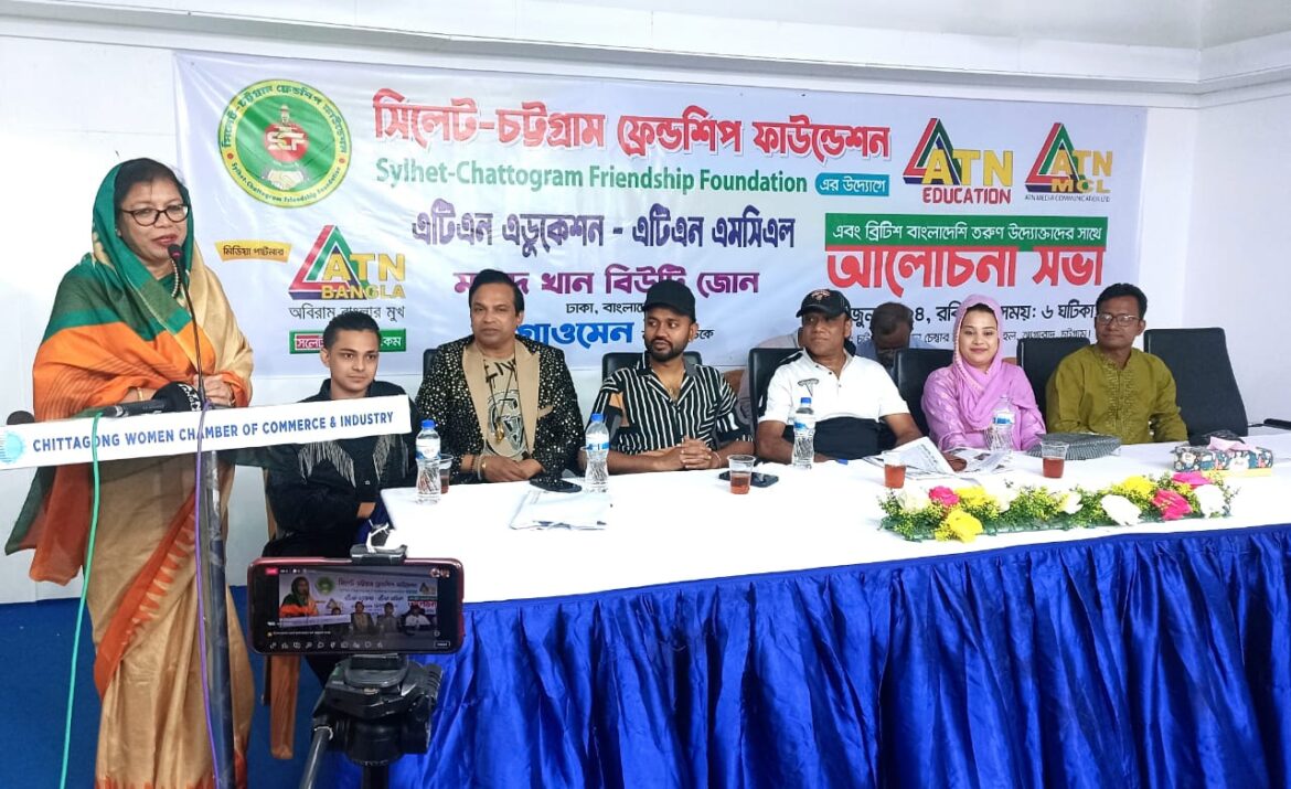 উৎফল বড়ুয়া, প্রতিনিধি: মানবিক ও সামাজিক সংগঠন সিলেট চট্টগ্রাম ফ্রেন্ডশিপ ফাউন্ডেশনের উদ্যোগে এটিএন এডুকেশন, এটিএন সিএমসিএল, মাসুদ খান বিউটি জোন-ঢাকা, গ্লো ওম্যান-ইউকে, ব্রিটিশ বাংলাদেশী তরুণ উদ্যোক্তা ও সুশীল সমাজের নেতৃবৃন্দের সাথে চট্টগ্রামের তরুণ উদ্যোক্তাদের এক আলোচনা সভা ৯ জুন, রবিবার সন্ধ্যা ৭ টায় নগরের আগ্রাবাদস্থ চট্টগ্রাম উইমেন চেম্বার অব কমার্স এন্ড ইন্ডাস্ট্রিজ মিলনায়তনে অনুষ্ঠিত হয়।