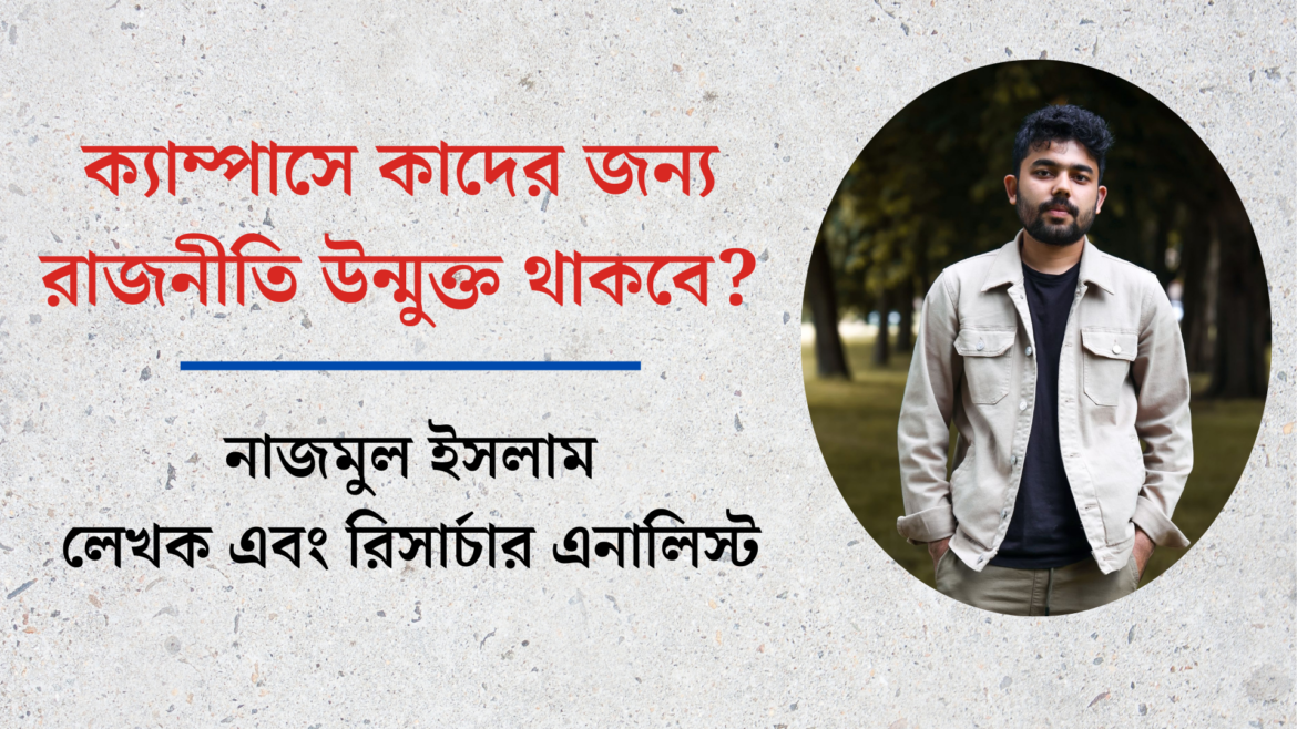ছাত্র শিবির? খেলাফতে মজলিস? বা যেকোনো ইসলামি দল? না। কারণ ওরা ধর্মভিত্তিক রাজনীতি করে। এদেরকে ক্যাম্পাসে রাখলে তালেবানি কালচার নিয়ে আসবে। ইসলামিক এজেন্ডা বাস্তবায়ন করবে। যা আমাদের ধর্ম নিরপেক্ষ রাষ্ট্রে বাধা হয়ে দাঁড়াবে।