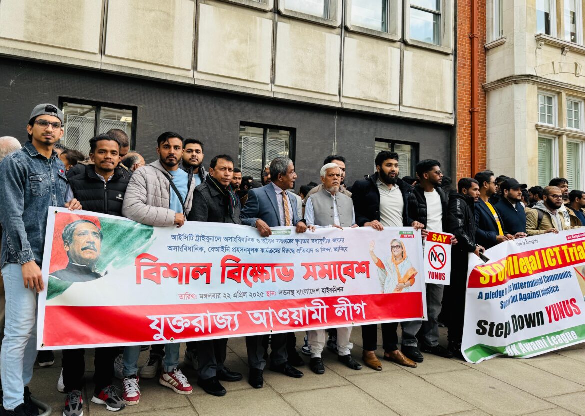 লন্ডন ডেস্কঃ ২২শে এপ্রিল মঙ্গলবার সাবেক প্রধানমন্ত্রী শেখ হাসিনার বিরুদ্ধে আইসিটি মামলার প্রতিবাদে যুক্তরাজ্য আওয়ামীলীগের উদ্যোগে লন্ডনস্থ বাংলাদেশ হাইকমিশন এর সামনে এক প্রতিবাদ ও বিক্ষোভ সমাবেশ অনুষ্ঠিত হয়েছে।