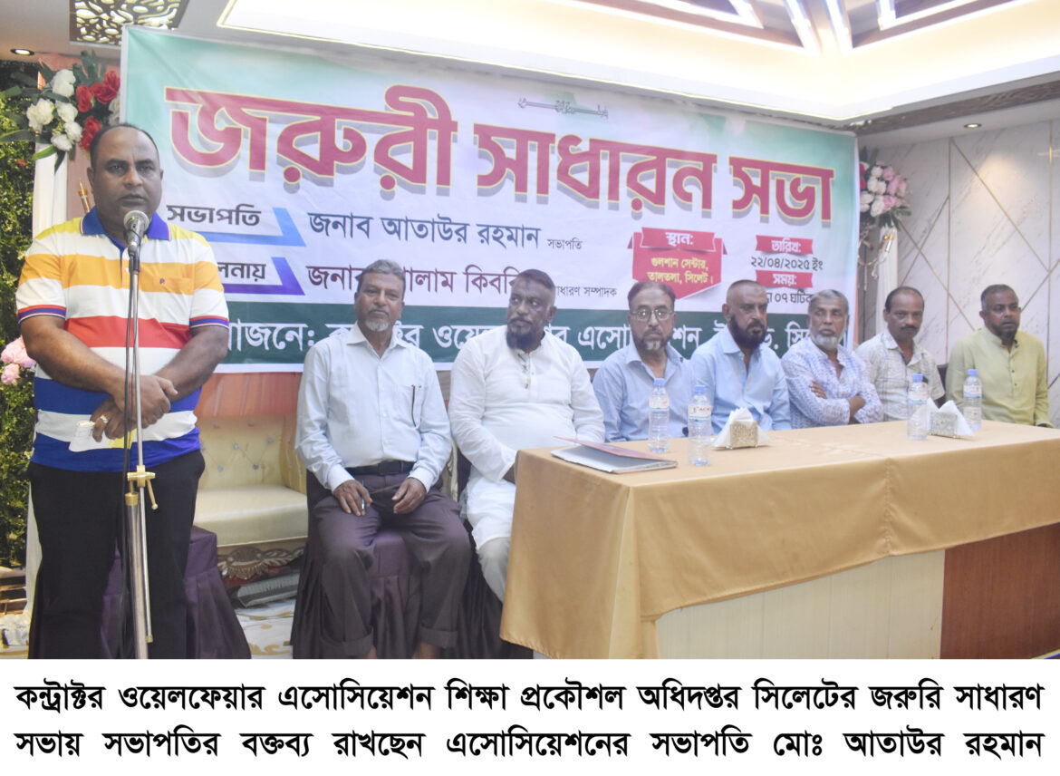 Home BangladeshSylhet কন্ট্রাক্টর ওয়েলফেয়ার এসোসিয়েশন শিক্ষা প্রকৌশল অধিদপ্তরের জরুরি সাধারণ সভা