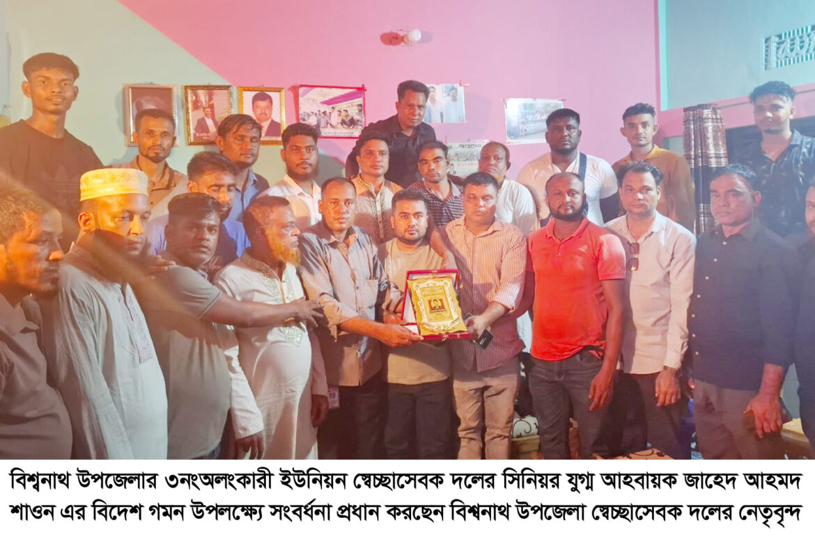 বিশ্বনাথ উপজেলার ৩নংঅলংকারী ইউনিয়ন স্বেচ্ছাসেবক দলের সিনিয়র যুগ্ম আহবায়ক জাহেদ আহমদ শাওন এর বিদেশ গমন উপলক্ষ্যে বিশ্বনাথ উপজেলা স্বেচ্ছাসেবক দলের উদ্যোগে সংবর্ধনা প্রদান করা হয়েছে। সোমবার (২১ জুলাই) রাত ৮টায় তাঁর নিজ বাড়িতে এ সংবর্ধনা প্রদান করা হয়।