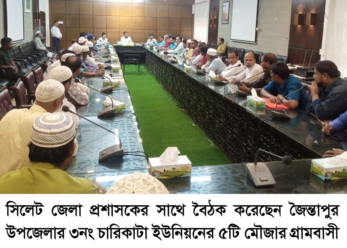 সিলেট জেলা প্রশাসকের সাথে বৈঠক করেছেন জৈন্তাপুর উপজেলার ৩নং চারিকাটা ইউনিয়নের ৫টি মৌজার গ্রামবাসী