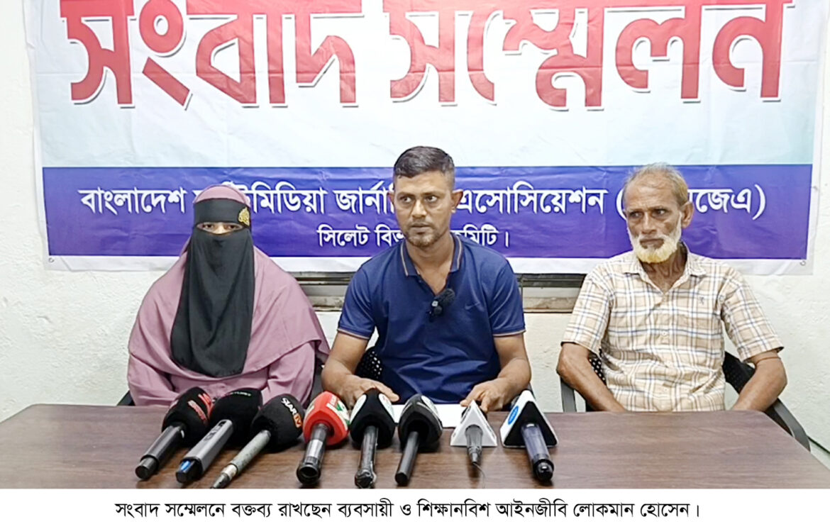 সংবাদ সম্মেলনে বক্তব্য রাখছেন ব্যবসায়ী ও শিক্ষানবিশ আইনজীবি লোকমান হোসেন।