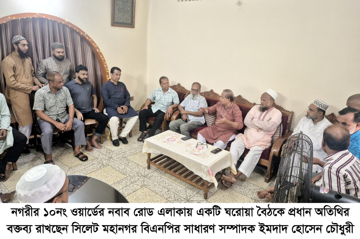 সিলেট মহানগর বিএনপির সাধারণ সম্পাদক ইমদাদ হোসেন চৌধুরী বলেছেন, বিএনপি একটি বৃহৎ রাজনৈতিক দল। পাড়া-মহল্লায় নেতাকর্মীদের মধ্যে সুদৃঢ় ভিত্তি থাকাই স্বাভাবিক। তবে মনে রাখতে হবে, নেতাকর্মীরা যাতে সাধারণ মানুষ এবং বিএনপির সমর্থিত মানুষের সাথে সর্বদা ভালো আচরণ করেন। যাতে করে মানুষের মাঝে বিএনপির প্রতি আগ্রহ ও ভালোবাসা আরও বৃদ্ধি পায়। পাড়া-মহল্লার মানুষদের সম্পৃক্ত করে আগামী দিনের বাংলাদেশে একটি সাম্য ও মানবিক সমাজ নির্মাণের লক্ষ্যে আমাদের ভারপ্রাপ্ত চেয়ারম্যান তারেক রহমানের চিন্তা-চেতনা বাস্তবায়নে নেতাকর্মীদের ঐক্যবদ্ধভাবে কাজ করতে হবে।
