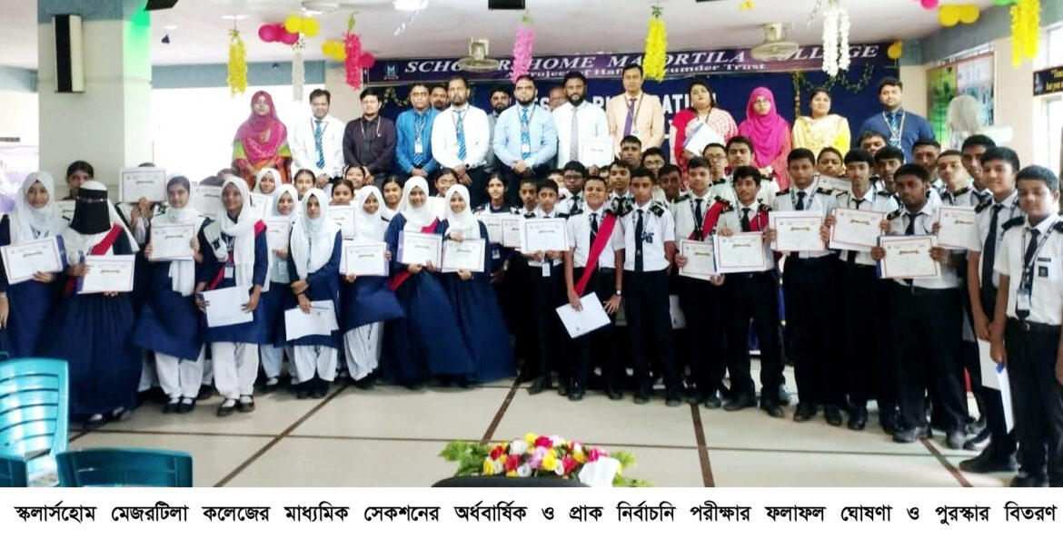 স্কলার্সহোম মেজরটিলা কলেজের মাধ্যমিক সেকশনের অর্ধবার্ষিক ও প্রাক নির্বাচনি পরীক্ষার ফলাফল ঘোষণা ও পুরস্কার বিতরণ