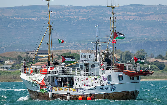 অবরুদ্ধ গাজাবাসীর জন্য ত্রাণসামগ্রী নিয়ে যাওয়া আন্তর্জাতিক অলাভজনক সংস্থা ফ্রিডম ফ্লোটিলা কোয়ালিশনের (এফএফসি) জাহাজ ‘হান্দালাকে’ বাধা দিয়েছে ইসরায়েলি বাহিনী। এক বিবৃতিতে সংস্থাটি জানিয়েছে, জাহাজটির আরোহীদের ‘অপহরণ’ করে নিয়ে যাওয়া হয়েছে। ওই সময় জাহাজটি গাজা উপকূল থেকে প্রায় ৪০ নটিক্যাল বা ৪৭ কিলোমিটার দূরে আন্তর্জাতিক জলসীমায় ছিল।