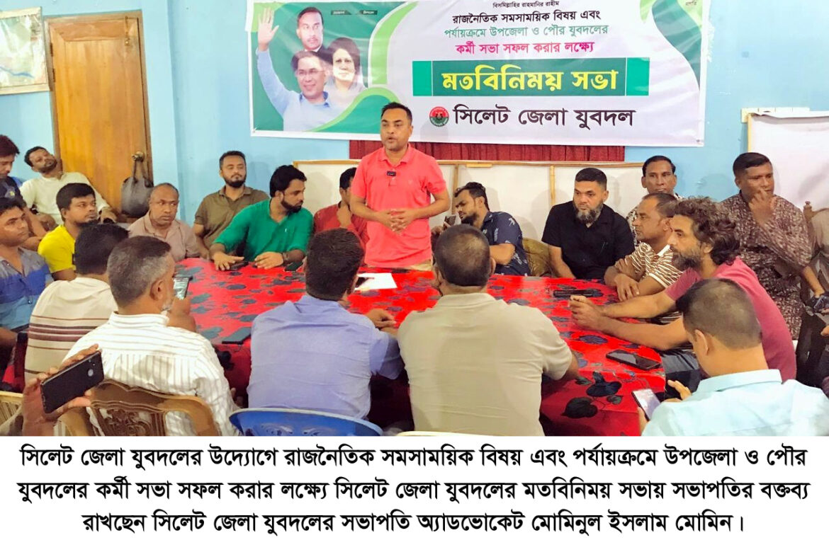 সিলেট জেলা যুবদলের সভাপতি অ্যাডভোকেট মোমিনুল ইসলাম মোমিন বলেছেন, যুবদল হচ্ছে বিএনপির প্রাণশক্তি। এই সংগঠনের প্রতিটি নেতা-কর্মী দেশের গণতান্ত্রিক আন্দোলনের অন্যতম চালিকাশক্তি। বর্তমানে দেশের সংকটময় রাজনৈতিক প্রেক্ষাপটে যুবদলের ভূমিকাই প্রমাণ করে, তারুণ্য কখনও মাথা নত করে না। নিপীড়নের মুখেও আমরা সংগ্রাম থেকে পিছু হটিনি, ভবিষ্যতেও হবো না। সিলেটসহ সারাদেশে যুবদলকে সুসংগঠিত ও শক্তিশালী করতে হবে।