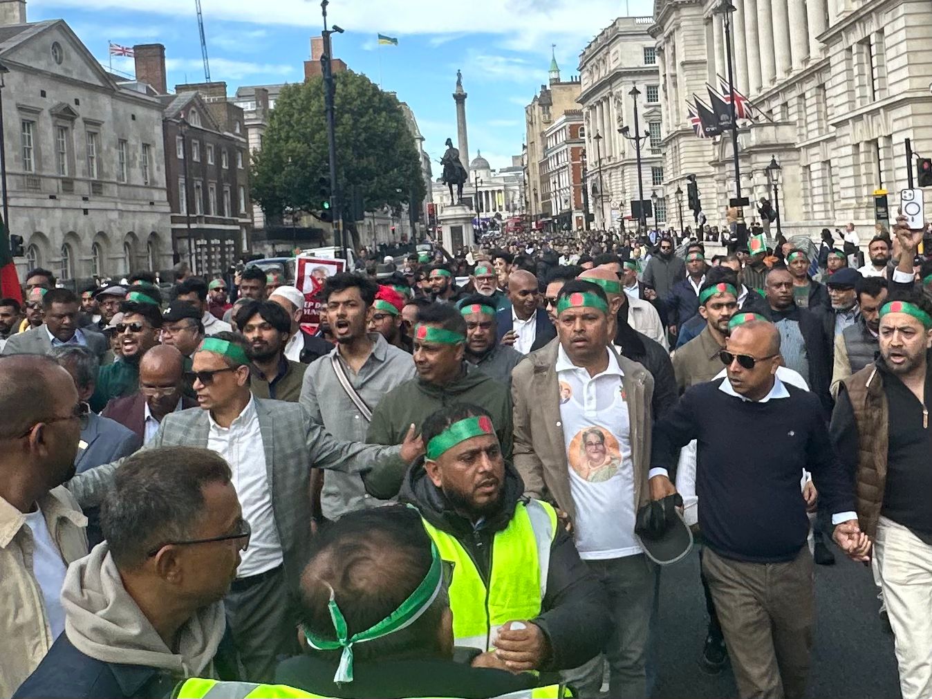 সকাল থেকে ট্রাফালগার স্কয়ারে ব্রিটেনের বিভিন্ন শহর থেকে আসা নেতাকর্মীরা জড়ো হতে শুরু করেন। এসময় নেতাকর্মীরা দলে দলে নানা রকম শ্লোগান দিয়ে সমাবেশে অংশ নেন। এসময় তারা বাংলাদেশে ঘটে যাওয়া বেশ কিছু অনিয়মের বিরুদ্ধে ও শ্লোগান দেয়। পরে তারা সেখান থেকে বিশাল র্যালির মাধ্যমে পার্লামেন্ট হাউজের সামনে মূল প্রোগ্রামে অংশগ্রহন করে। এসময় আওয়ামীলীগের সিনিয়র নেতৃবৃন্দ উপস্থিত ছিলেন।