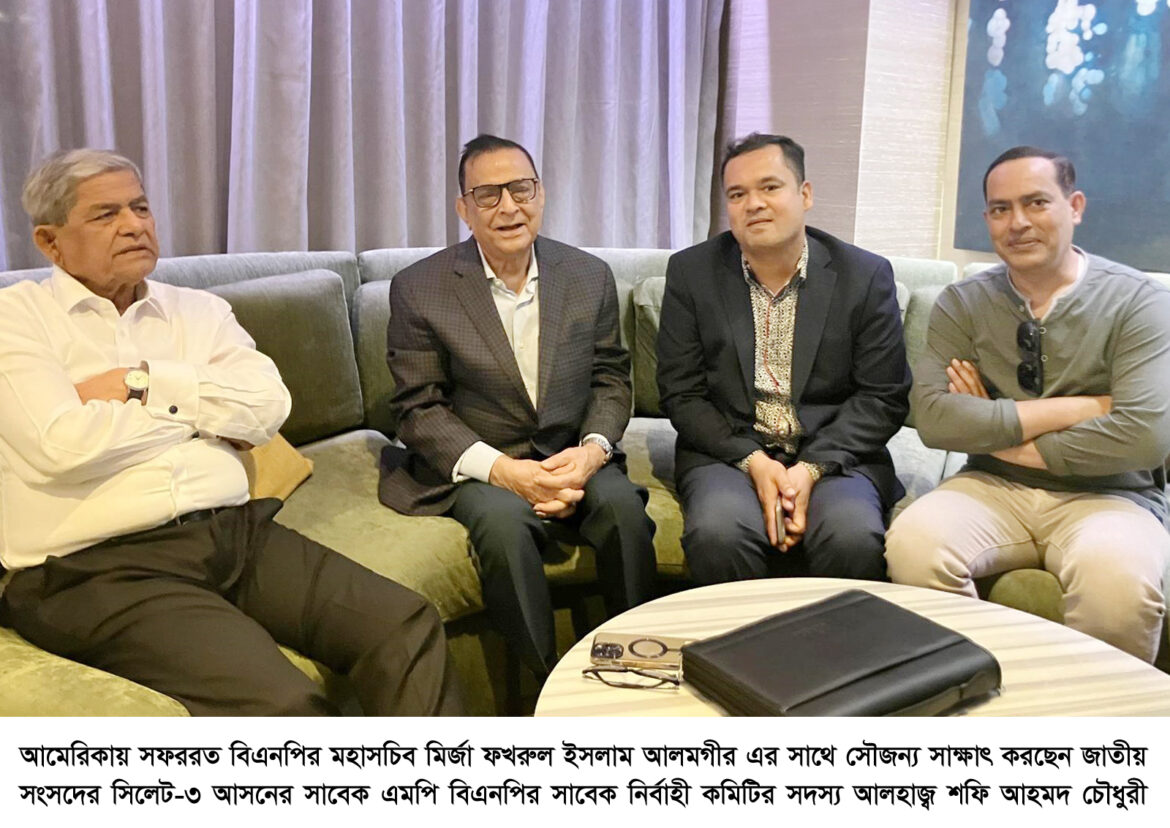 আমেরিকায় সফররত বিএনপির মহাসচিব মির্জা ফখরুল ইসলাম আলমগীর এর সাথে সৌজন্য সাক্ষাৎ করেছেন জাতীয় সংসদের সিলেট-৩ (দক্ষিণ সুরমা, ফেঞ্চুগঞ্জ ও বালাগঞ্জ) আসনের সাবেক এমপি বিএনপির সাবেক নির্বাহী কমিটির সদস্য আলহাজ্ব শফি আহমদ চৌধুরী।
