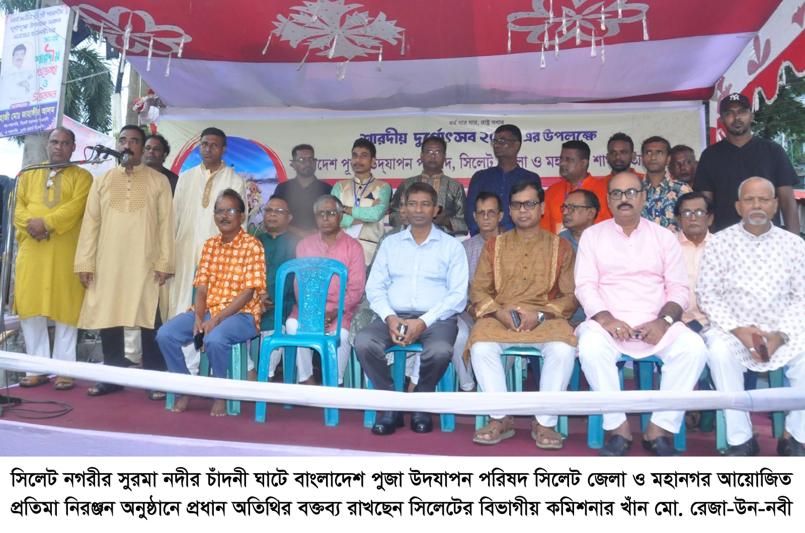 সিলেটের বিভাগীয় কমিশনার খাঁন মো. রেজা-উন-নবী বলেছেন, শারদীয় দুর্গোৎসব আবহমান বাংলার সম্মিলনের প্রতীক। এই অনুষ্ঠান ধর্ম, বর্ণ, নির্বিশেষে সকল মানবকে মিলন মেলায় ঐক্যের বন্ধনে আবদ্ধ করে। সকলের মধ্যে সম্প্রীতির বোধ জাগ্রত করে, এই পূজানুষ্ঠান ধর্মীয় হলেও এর সাংস্কৃতিক গুরত্ব ধর্মীয় অপরিসীম। শারদ আয়োজন এই বাংলার সকলের মধ্যে অসাম্প্রদায়িক চেতনা সঞ্চার করে। এই সম্প্রীতির চেতনা আমাদের অসাম্প্রদায়িক রাষ্ট্র প্রতিষ্ঠার জাতীয় অঙ্গীকার।
