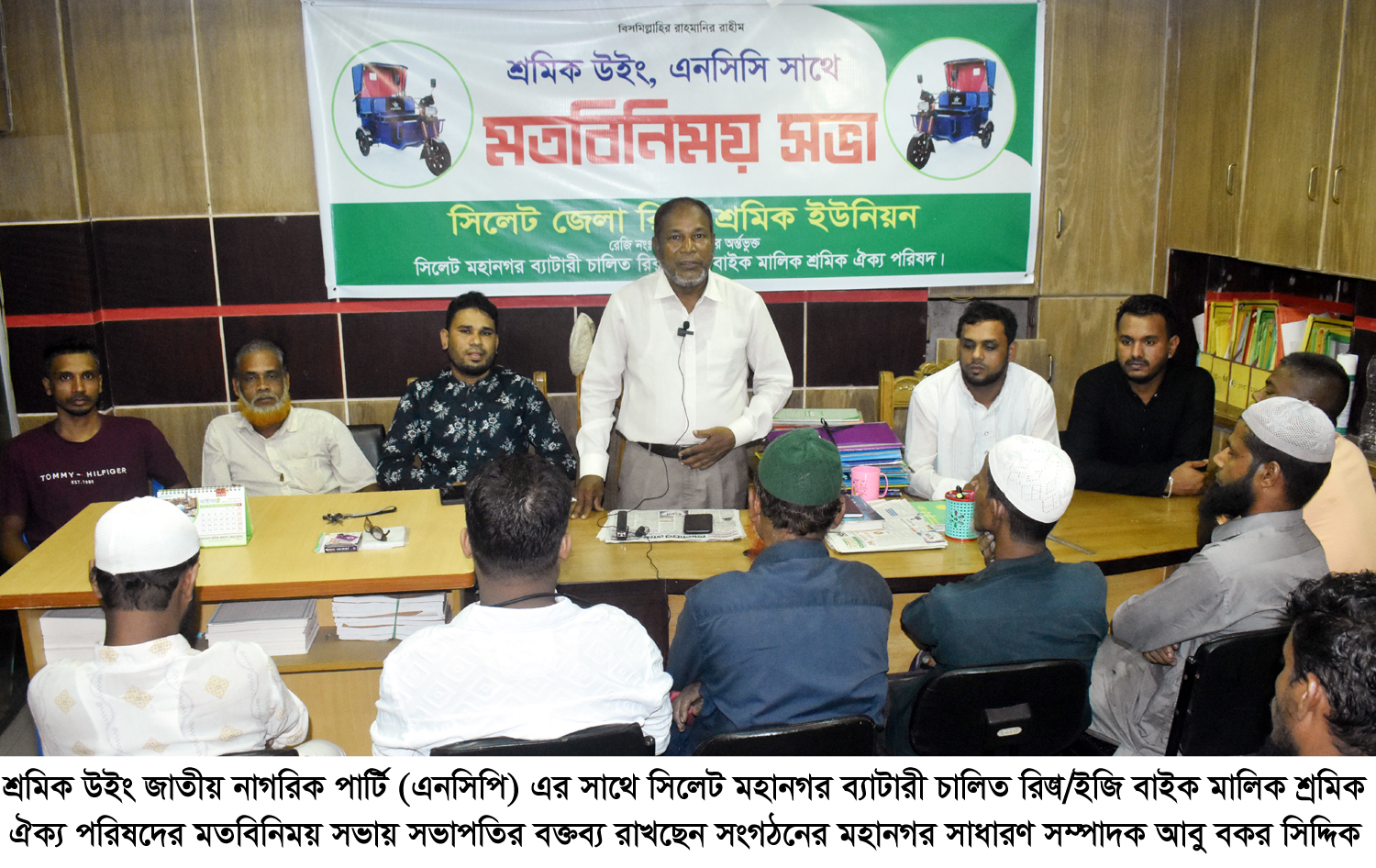 শ্রমিক উইং এনসিপির সাথে ব্যাটারি চালিত রিক্সামালিক শ্রমিক ঐক্য পরিষদের মতবিনিময়