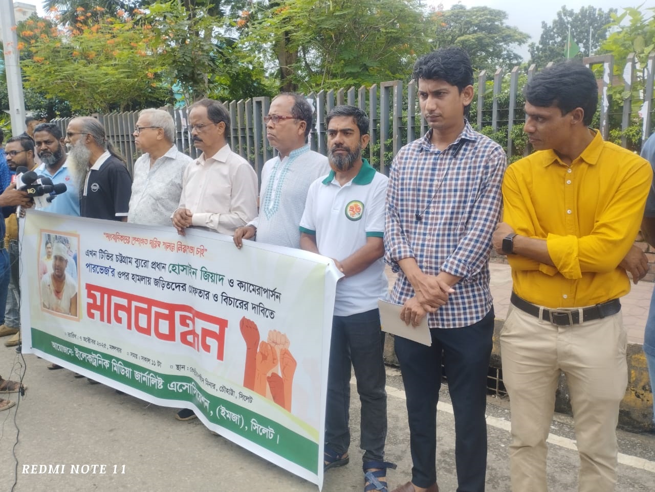 এখন টিভির চট্টগ্রাম ব্যুরো প্রধান হোসাইন জিয়াদ ও ক্যামেরাপার্সন পারভেজ’র ওপর হামলায় জড়িতদের গ্রেফতার ও বিচারের দাবিতে সিলেট নগরীতে মানববন্ধন সম্পন্ন হয়েছে।