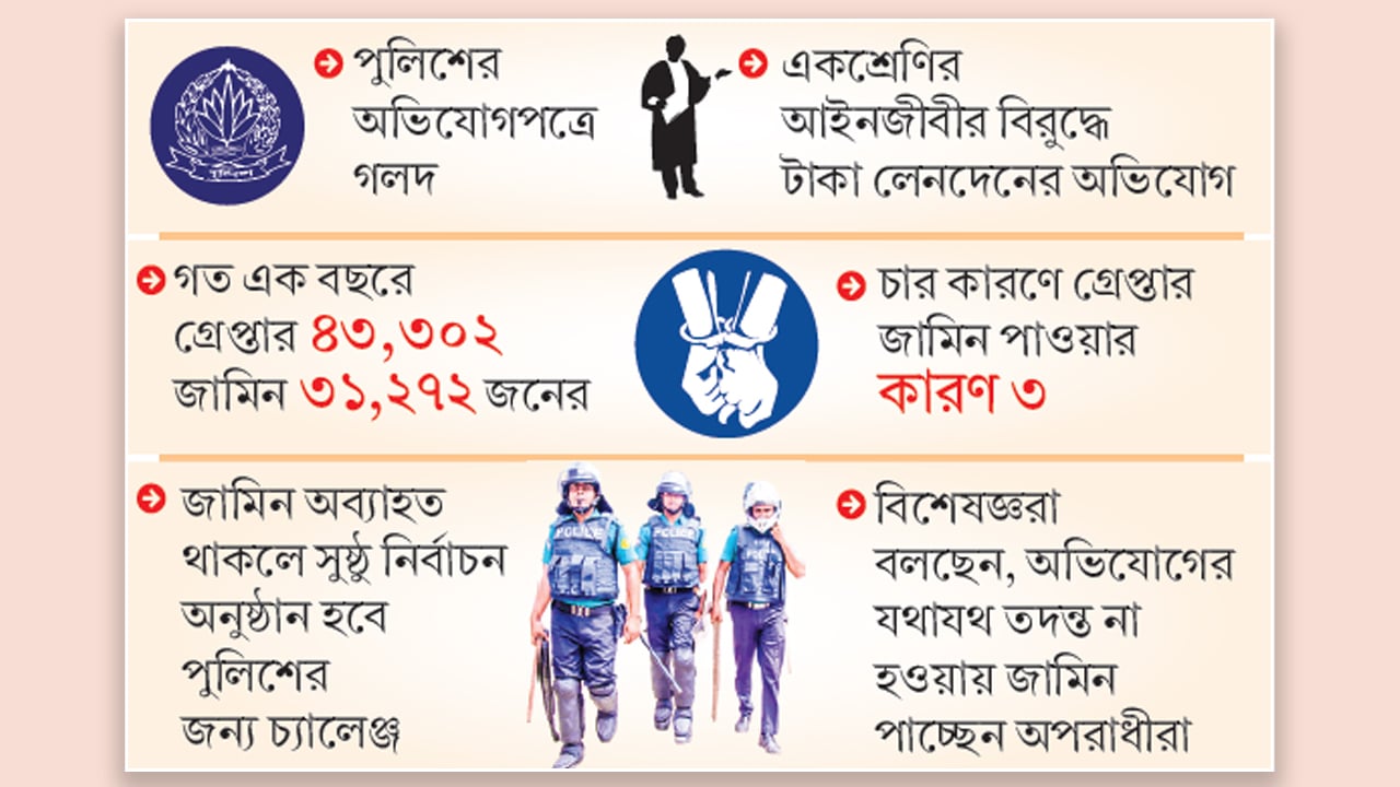 জুলাই বিপ্লবে স্বৈরশাসক শেখ হাসিনা ভারতে পালিয়ে যাওয়ার পর তার দল আওয়ামী লীগের (কার্যক্রম নিষিদ্ধ) বহু নেতা-কর্মীকে আইনের আওতায় আনে আইন-শৃঙ্খলা বাহিনী। এরমধ্যে দলটির মন্ত্রী থেকে শুরু করে ইউনিয়ন পর্যায়ের নেতাকর্মীও রয়েছেন। কিন্তু যে গতিতে তাদের ধরা হচ্ছে ঠিক একই গতিতে তাদের দেওয়া হচ্ছে জামিন। পুলিশ বলছে, আওয়ামী আসামিরা যদি এভাবে জামিন পেতেই থাকে তাহলে আগামী নির্বাচন আয়োজন কঠিন হয়ে যাবে।