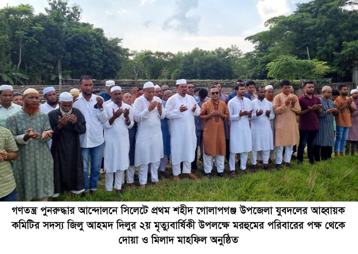 পরিবারের পক্ষে আয়োজিত দোয়া মাহফিলে জিলুর বিদেহী আত্মার মাগফিরাত কামনা করে বিশেষ মোনাজাত করা হয়। এই শোক ও দোয়া মাহফিলে সিলেট জেলা ও উপজেলা যুবদল ও বিএনপির ঊর্ধ্বতন নেতৃবৃন্দ উপস্থিত হয়ে মরহুমের প্রতি শ্রদ্ধা জানান।