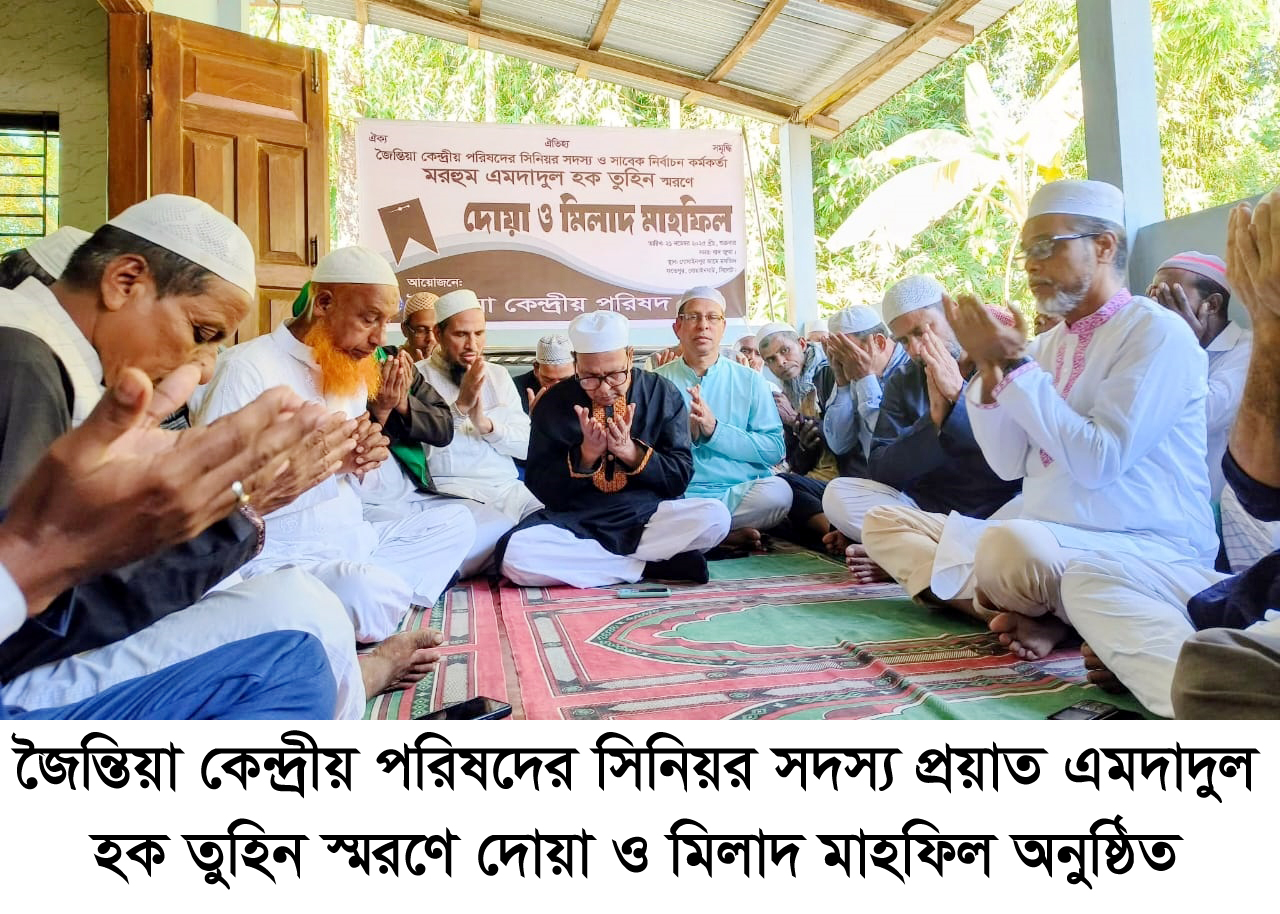 জৈন্তিয়া কেন্দ্রীয় পরিষদের সিনিয়র সদস্য প্রয়াতএমদাদুল হক তুহিন স্মরণে দোয়া ও মিলাদ মাহফিল